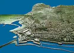 Warren and his team also improved the topographic map of Jerusalem[5] and made the first excavations of Tell es-Sultan, site of biblical city of Jericho.[6] Some of the sites listed on Warren's topographic map, particularly that of Acra (where he places it in the Upper City,[7] contrary to Josephus who places it in the Lower City), have since been corrected and updated.[8]