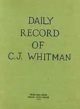 While awaiting his court-martial in 1963, Whitman began to write a diary titled Daily Record of C. J. Whitman.[33] In it, he wrote about his daily life in the Marine Corps and his interactions with his wife and other family members. He also wrote about his upcoming court-martial and contempt for the Marine Corps, criticizing them for inefficiencies. In his writings about Leissner, Whitman often praised her and expressed his longing to be with her. He also wrote about his efforts and plans to free himself from financial dependence on his father.[34]