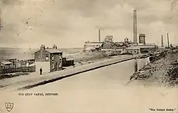 Also in 1865, Wigg established a new chemical factory in Runcorn making soap and alkali.[7] This was located on the north side of the Runcorn to Latchford Canal between the canal and the River Mersey. The area was known as the Old Quay, and the factory was called the Old Quay Chemical Works.[7] Wigg was joined in the enterprise by Neil Mathieson, who had been the works manager for the Johnsons' business.[8] They soon abandoned making soap and alkali, and began to extract copper from pyrites ash. In 1869 Wigg and Mathieson were joined by Duncan McKechnie.[7] McKechnie had been a foreman at Johnsons', where he had gained expertise in the extraction of copper.[9] However the partnership did not last, and in 1871 McKechnie left to form his own copper works in St Helens.[10] In 1873 Mathieson was named in an action by Sir Richard Brooke of Norton Priory for "damage to his trees and pastures form noxious emissions".[7] Mathieson decided to leave the Old Quay factory and establish his own factory in Widnes on the other side of the Mersey.[11]