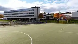 Charleston Academy opened in August 1978 on a new site to the west of Inverness. The school is part of the Charleston Academy Community Campus which consists of the school, its associated Community Centre and the Highland Football Academy. As a former School of Ambition, extensive improvements to Physical Education provision have been made in recent years. The school has two Multi Use Games Areas (MUGA) and an all-weather, floodlit astroturf pitch. Since 2012 the school has been a SFA accredited School of Football.[2] In 2015 the Albert Roux Training Kitchen was officially opened within the school. This industrial, catering quality kitchen had been developed within the Home Economics department and was used to provide vocational courses aligned to careers in the hospitality industry. Since 2010, Chez Albert Roux OBE has worked with the schools' Rector and Home Economics department [3] to establish such a facility in Inverness. The facility was named in his honour. However, the facility was closed in 2022. The school also has a history of asbestos infections.[4] June 2023 saw the school shutting a week before the summer holidays due to a red mite infestation.[5]