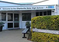 Charleville State High School is a government secondary (7–12) school for boys and girls on the corner of Partridge and Hunter Streets (26°23′51″S 146°15′27″E / 26.3974°S 146.2574°E).[46][50] It was established in 1961, replacing the Secondary Department at Charleville State School. In 2018, the school had an enrolment of 246 students (including students from Augathella, Morven and Wyandra) with 36 teachers (34 full-time equivalent) and 21 non-teaching staff (16 full-time equivalent).[48] It includes a special education program.[46]