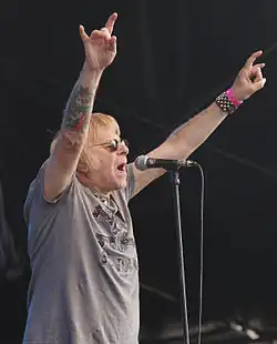 He was a veteran of the London R&B scene at the time of the UK Subs being formed in 1976.[3] His first band in 1964 was named Charlie Harper Free Press Band.[4][5] Prior to performing as the UK Subs, he was the frontman and founder of The Marauders, who were a pub rock band.[3] After seeing a couple of punk rock shows at The Roxy, the band changed their name to the Subversives and started playing punk rock.[3] The name was eventually modified to U.K. Subs.[2]