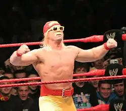 Beginning in late August, Haas turned into a face and began a storyline in which he began to impersonate other wrestlers, a concept created by John Laurinaitis, a WWE executive.[63] His first match on August 25, 2008 under this gimmick was a loss to Carlito's real-life brother Primo Colón, while Haas was parodying Carlito with the name "Charlito".[64] He has portrayed such superstars as John Cena, John "Bradshaw" Layfield, Jim Ross, The Great Khali, Montel Vontavious Porter, legends such as Stone Cold Steve Austin, Bret Hart, "Mr. Perfect" Curt Hennig, Jimmy "Superfly" Snuka, Rowdy Roddy Piper, the Undertaker, Hulk Hogan and even WWE Diva Beth Phoenix for which he won a Slammy Award.[63][65]