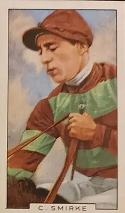 Charles James William Smirke (1906–1993) was a British flat-race jockey. In a career that lasted from 1920 until 1959, he rode the winners of eleven British Classic Races. As a rider, he was known for his skill, strength and tactical intelligence,[1] together with his self-confident and outspoken personality. Although he never won the Championship, he was regarded as one of the best jockeys of his era.[2] The Racing Post ranked him as the fifth greatest jockey of the 20th Century and the greatest never to have been champion.[3]