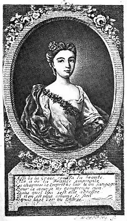 Her father's palace was pillaged by the Turks, and as a child of four years old she was sold to the comte Charles de Ferriol, the French ambassador at Constantinople (see Crimean slave trade). She was brought up in Paris by Ferriol's sister-in-law, Marie-Angélique de Tencin, with her own sons, Antoine de Ferriol de Pont-de-Veyle (1697–1774) and d'Argental (1700–1788). Her great beauty and romantic history made her the fashion, and she attracted the notice of the regent, Philip II, Duke of Orléans, whose offers she had the strength of mind to refuse. She formed a deep and lasting attachment to Blaise-Marie d'Aydie (1692–1761), a knight of Malta, by whom she had a daughter. She died in Paris.