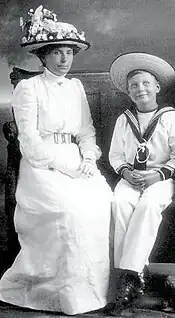 As the children grew up, she became especially close to the youngest child, John, who had epilepsy and learning difficulties.[3] Although John originally stayed at York Cottage with his mother and father, he was separated from them and moved with Bill to nearby Wood Farm on the Sandringham Estate.[3] Bill nursed John until his death from a severe epileptic seizure on 18 January 1919. It was Bill who telephoned Queen Mary to inform her of his death, and she and the King travelled from Buckingham Palace to Wood Farm to see their dead son. Bill attended his burial at Sandringham Church, where he was interred next to his uncle Prince Alexander John of Wales, the infant son of King Edward VII and Queen Alexandra, John's grandparents.[1]