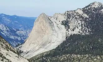 Charlotte Dome is a granite dome in California's Kings Canyon National Park. It lies to the southeast of Glacier Monument and north of Bubbs Creek. It is most easily accessed from the Onion Valley trailhead to the east. The South Face Route is featured in Fifty Classic Climbs of North America.[4][5] This climb is a grade III, class 5.7.[3]