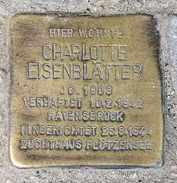 - ^ a b "Charlotte Eisenblätter". Koordinierungsstelle Stolpersteine Berlin. Stolpersteine Berlin. Retrieved 9 November 2023.