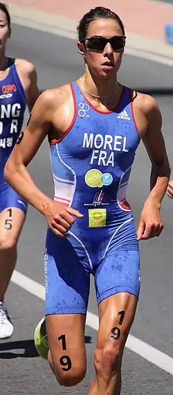 Tall as she is (1.72m), Morel has been featured several times as a maillots de bain model, e.g. on the frontpage and in a special section of the leading French magazine Triathlète.[2] The French media often depicted Morel and Emmie Charayron, the Junior World Champion of 2009, as the most promising prospects for the 2012 Summer Olympics. The leading French magazine, Triathlète, for instance, dedicated its famous two-page column called "Confrontation" to the two young triathletes.[3]