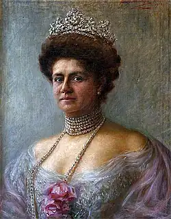 The principal reason appears to lie in Charlotte's perceived reluctance to carry out her public and ceremonial duties as it was felt she should have done. For example, she preferred to celebrate her birthdays in the privacy of Friedrichshafen rather than in visible togetherness with her subjects. She left the king mostly on his own to oversee military parades, and after a few years no longer accompanied him in the public celebration of the Kaiser's birthday. She was also not thought regal enough for her new position; the Grand Duchess of Mecklenburg-Strelitz commented in 1892, "I heard ...that she is too jolly & off-hand for a Queen, and so ugly besides".[1] The Grand Duchess' sister the Duchess of Teck liked Charlotte, but believed she took no trouble with her clothes or appearance.[1] This contrasted sharply with her husband, who was known as a cultivated and distinguished man of aesthetic tastes.[1]