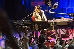 Carlos Alberto García Moreno (born October 23, 1951), better known by his stage name Charly García,[1] is an Argentine singer-songwriter, multi-instrumentalist, composer and record producer, considered one of the most important rock musicians in Argentine and Latin American music.[2] Named "the father of rock nacional", García is widely acclaimed for his recording work, both in his multiple groups and as a soloist, and for the complexity of his music compositions, covering genres like folk rock, progressive rock, symphonic rock, jazz, new wave, pop rock, funk rock, and synth-pop. His lyrics are known for being transgressive and critical towards modern Argentine society, especially during the era of the military dictatorship, and for his rebellious and extravagant personality, which has drawn significant media attention over the years.[3][4][5][6][7][8][9]