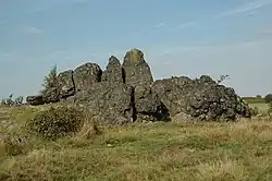 This is the largest area of moorland in the East Midlands, and it is mainly covered by bracken on dry hills, while wet heath is dominated by purple moor-grass. The site is geologically important for the 'bomb' rocks, volcanic blocks dating the Ediacaran period around 600 million years ago.[7][8]