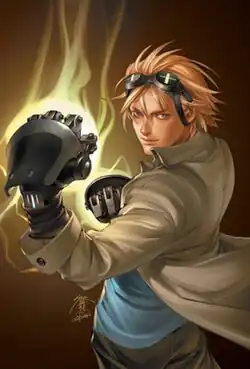 Victor Chase Stein[1] (also known as Talkback[2]) is a superhero appearing in American comic books published by Marvel Comics. The character was created by author Brian K. Vaughan and artist Adrian Alphona, and debuted in Runaways #1 with most of the other main characters.[3] Along with every member of the original Runaways, he is the child of evil villains with special abilities—in Chase's case, mad scientists.[3] Chase tends to be viewed as the "wild card" in the series due to his shifting roles within the group (e.g. getaway guy, technical wiz, loose cannon).[4] Chase, 18 years old, is the eldest of the Runaways.[5] Chase possesses a signature set of gauntlets called Fistigons[6] and later shares a psychic and empathic link with the Deinonychus Old Lace, granting Chase the ability to command the dinosaur.[5]
