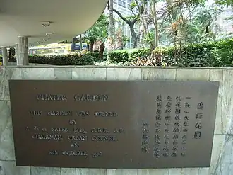 Chater Garden, located in the Central District of Hong Kong, is a public park directly east of the Legislative Council building. It is named after Sir Paul Chater, as is the adjacent Chater Road.[1]