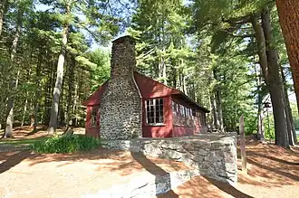 Chatfield Hollow was designated as a state park in 1949.[3] It was developed in the 1930s as a Civilian Conservation Corps recreation area within Cockaponset State Forest.[4] The CCC created Schreeder Pond in 1934 by building a horseshoe-shaped earth and stone dam across Chatfield Hollow Brook. In 1937, Oak Lodge was raised on the west side of Schreeder Pond; the lodge was listed on the National Register of Historic Places in 1986.[5] A "from the ground up" restoration of the lodge was completed in 2017.[6]