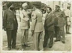 ![]() Singh, 9th Bhopal Infantry, meeting Army Chief Rajendrasinhji Jadeja in 1953 | |