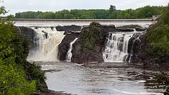 Chaudière Falls (French: Chutes de la Chaudière, pronounced [ʃyt də la ʃodjɛʁ]) is a 35-meter-high (115 ft) waterfall in Lévis, Quebec, along the Chaudière River. It is part of the regional Parc des Chutes-de-la-Chaudière, which features a 113-metre-long (371 ft) suspension footbridge standing 23 metres over the river.[3] There are walking and bicycle trails along the river.