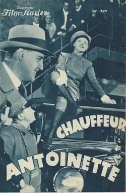 Chauffeur Antoinette is a 1932 German comedy film directed by Herbert Selpin and starring Charlotte Ander, Hans Adalbert Schlettow and Walter Steinbeck. It was shot at the Johannisthal Studios in Berlin. The film's sets were designed by the art director Erich Czerwonski. A British remake The Love Contract was produced the same year[1] and a French version Antoinette was also released.