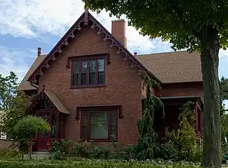 Designed by architect Andrew Jackson Downing, it is a two-story red brick house, built before 1854, perhaps as early as 1842, and is the oldest Gothic Revival-style house in Racine.[3]