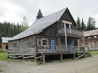 The Chee Kung Tong Building is a Canadian historic building in Barkerville, British Columbia. The building is a rare surviving example of Canadian Chinese benevolent society architecture. It consists of a two-story wooden structure with two log lean-tos on the north and east sides and a balcony. The ground floor is divided into a hostel, kitchen, and socializing space and the top floor was divided between a society hall and an alter room.[2] It is among the oldest surviving structures in the town.