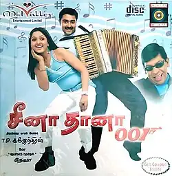 Cheena Thaana 001 is a 2007 Indian Tamil-language action comedy film directed by T. P. Gajendran. The film stars Prasanna and Sheela, while Vadivelu, Manivannan, Riyaz Khan, Delhi Ganesh, and Kazan Khan play supporting roles. It is a remake of the 2003 Malayalam film C.I.D. Moosa.[1] The music was composed by Deva with cinematography by Raja Rajan and editing by N. Ganesh. The film released on 7 September 2007.