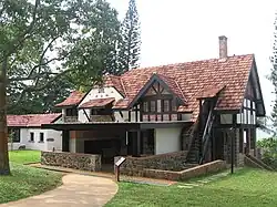 The two-storey cottage was constructed in the Tudor style. Its gables are framed with timber and treated with creosote and its walls are Stucco-finished.[1] It features a bricked-up fireplace,[2] as well as masonry infill walls and steeply pitched roofs.[1] According to the Urban Redevelopment Authority, the "skillful builders in this case have gone out of their way to use bent and irregular-shaped timber members as one would find in English country situations", and that "the masonry work is a well-considered mix of cut granite, brick and stone."[3] The terracotta floor has a "rare" honeycomb shape.[4] The house also features black metal-framed windows that were doubled-framed with netting to prevent insects from entering. The building's quoins were constructed using granite from Pulau Ubin.[1]