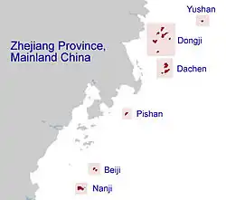 ![]() Chekiang Province under ROC control, between 1949 and 1955. | |||||||||