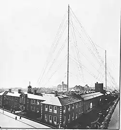 The New Street factory was scheduled to be redeveloped starting in 2010,[42] but this fell through when site owners Ashwell Property Group entered administration in December 2009. The factory remained empty, derelict and vandalised for several years, to the dismay of Marconi Veterans and Chelmsfordians.[43][44] The site was sold for redevelopment to Bellway Homes in the summer of 2012 with demolition of the majority of the site including the iconic Marconi House and Building 720 in April/May 2013. Only the Grade II listed water tower, The 1912 front building façade, the New Street cottages, and the power house will remain.[45]