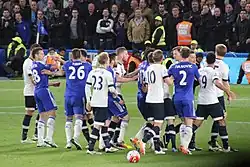 ![]() Chelsea and Tottenham Hotspur contesting the 2015 Football League Cup final. | |