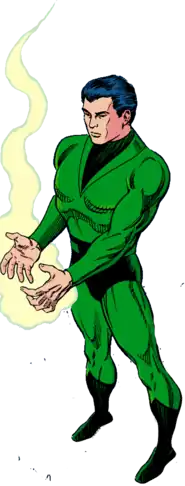 Chemical King is a metahuman who can manipulate the speed of chemical and energy reactions. As a member of the Legion of Super-Heroes, he is provided a Legion Flight Ring, which allows him to fly and protects him from the vacuum of space and other dangerous environments.
