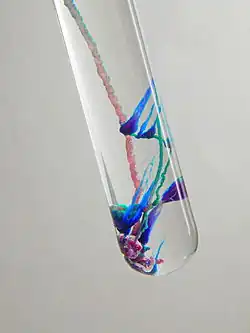 - ^ Thouvenel-Romans, S; Steinbock, O (April 2003). "Oscillatory growth of silica tubes in chemical gardens" (PDF). Journal of the American Chemical Society. 125 (14): 4338–41. Bibcode:2003JAChS.125.4338T. doi:10.1021/ja0298343. ISSN 0002-7863. PMID 12670257. Archived from the original (PDF) on 11 August 2017. Retrieved 23 May 2009.