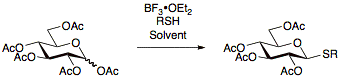 Thioglycosides are usually prepared by reacting per-acetylated sugars with BF