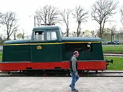 In 1930, the VFIL abolished third class.[28] Third class carriages were reclassified as second class.[30] In 1931, an 0-6-0+0-6-0T Mallet locomotive was bought. It was restricted to operating between Anvin and Guînes.[29] In 1932, VFIL built a railcar at Lumbres. It was fitted with a 65 horsepower (48 kW) De Dion JMH petrol engine. Numbered ARB2, it seated 28 with twelve standing. Another railcar, numbered CGL1 was built at about this time. In 1933 railcars RS1 and RS2 were rebuilt at Lumbres. RS1 was shortened and fitted with at 65 horsepower (48 kW) Unic diesel engine. It was renumbered CGL11. RS2 was fitted with an 85 horsepower (63 kW) Berliot diesel engine. It was renumbered PdC101. In 1934-35, five more railcars were built at Lumbres. These were fitted with 65 horsepower (48 kW) Unic M24 diesel engines. Numbered ARB3-5 and CGL6-7, they seated 29 with eleven standing.[31] All railcars were second class only.[28]