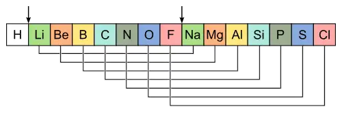 In 1863 John Newlands noticed that when ordered by weight, every eighth element seemed to share similar properties, such as carbon and silicon in the sequence: carbon, nitrogen, oxygen, fluorine, sodium, magnesium and silicon. He called this a Law of Octaves.