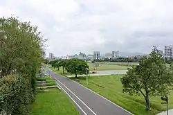 The park is divided into two parts by the river, the northern part which is located in Neihu District on the right side of the river bank and the southern part which is located in Nangang District on the left side of the river bank.[1] The park on the right side of the river bank spans over an area of 9.9 hectares and the one on the left side spans over an area of 2.2 hectares.[2][3]
