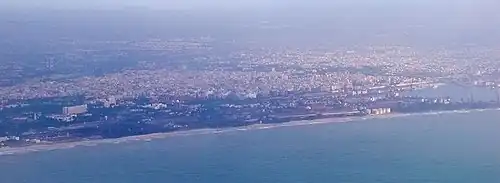 Historically, the port was responsible for the shoreline changes in the region, where the area south of the port has accreted significantly, resulting in the formation of the Marina Beach, whereas the coast in the northern region has undergone severe erosion.[38][39] Ever since the harbour was constructed, the coast north of the harbour has been experiencing erosion at the rate of about 8 m annually. The shoreline has recessed by about 1,000 m with respect to the original shoreline in 1876. It is estimated that 500 m of beach has been lost between 1876 and 1975 and another 200 m between 1978 and 1995. About 350 ha land in the coast north of the port is lost into sea.[33] On the other hand, the area south of the port is increasing 40 sq m every year due to the progradation.[39]