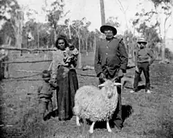 ![]() George of Saxby Downs with his wife at Barambah Aboriginal Settlement, 1909 | |||||||||||||||