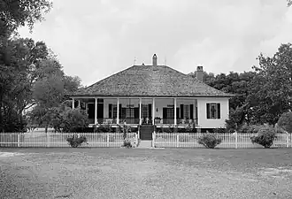The name "Cherokee" started as a nickname given by the slaves, for the large hedges of Cherokee roses that were surrounding the property.[4] The complex included 3 old barns, a slave cabin, and a "log crib".[4] The plantation grew primarily cotton, as well as indigo, sugarcane, corn, and tobacco.[4] By 1860, Sompayrac had owned 65 enslaved people.[8][4]