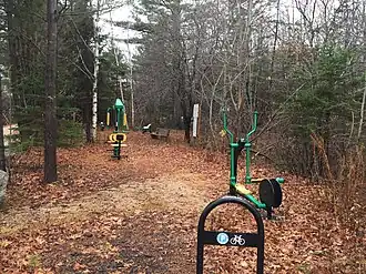 Green Gym Park is located across from the playground and includes five different stations of exercise equipment.[11]