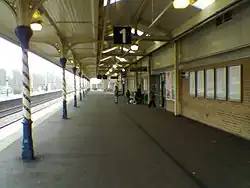 - Platform 3 is bi-directional and was opened in July 2010. As of May 2015, it is used by some services on the Leeds-Nottingham and Liverpool-Norwich routes at peak periods and during engineering works to reduce dependence on replacement bus services.[8] It is located on the down slow line, backing on to platform 2, and is long enough to accommodate a 10 car train. Platform 3 had existed in a previous incarnation decades earlier, although it was a bay platform.[9][10]