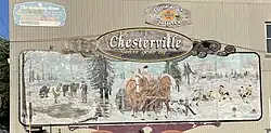 - ”Chesterville: Years Gone By” Mural - On May 6, 2006, the Chesterville Lions Club unveiled a second historic mural on the west side of the Gathering House at the bridge entrance. The mural depicts a winter scene in the village, with men cutting ice from the Nation River, and a game of Shinny. The mural is topped with “Chesterville: Years Gone By”. The mural was painted by Marilyn St. Pierre and provided by Shane Signs.