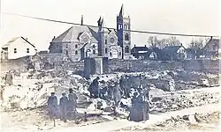 Following these incidents, the village quickly took steps to improve their fire protection. In May, a by-law was prepared by the village council to mandate that only "fireproof" buildings (such as brick and stone) could be constructed in the business section of town.[16] In the summer of 1909, the village purchased a steam pumper fire engine. Frank McCloskey was appointed fire chief and formed a brigade.[17] However, the first fire hydrants were not installed in the village until 1916, when Hires Condensed Milk Co. (later Nestle) installed a water main along Queen and Main Streets.[18]