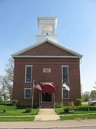 Chesterville's first church was a Primitive Baptist congregation, which was organized in 1816. The first Methodists in the vicinity of the present village gathered under the preaching of itinerant preachers in the late 1820s, and the first Methodist sermon in Chesterville itself was preached in 1833 by a minister who stayed overnight in the village while travelling from Mansfield to Columbus. A class was formed soon afterward, worshipping in an old schoolhouse, and the first minister was a Rev. McDowell. The congregation's earliest extant records date from July 1836. One year later, the first church building was erected at a cost of $1,200 in addition to $150 for the land. The congregation continued worshipping at this property until late 1850; they sold it in 1849 for $350 while retaining the right to use it for a year, and in later years, the building was converted into a school. The present church building was erected in 1851 at a cost of several thousand dollars; it was several years before the congregation struggled out of debt,[3]: 368 but in the end they secured a building suitable for their own purposes for many generations. Lying behind the church building is a cemetery, which was established circa 1837.[3]: 371 Although the Baptists lasted for many years, and although a PCUSA congregation was formed in Chesterville in 1845,[4] Chesterville Community Church is now the only extant church in the village limits.[5]: 5