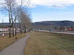 On 4 December 1996, Chetwynd's boundaries were expanded to include 49 square kilometres (19 sq mi) of forested land and industrial properties.[18] Most of this came from moving the northern border up 210 metres (690 ft) over Ol' Baldy Ridge to create a community forest, a concept which originated from a Chetwynd Secondary School proposal in 1980 for a fitness trail. The trail became the backbone of a system of interconnected trails and greenspaces that went up the ridge. Four industrial properties—a gas plant, sulfur processing plant, coal mine, and pulp mill—became exclaves of the district as they incorporated to receive municipal services. The coal mine, with an expected lifespan of 15 years, was approved by the province for development in 1998. It was not constructed until 2004, making it the province's first new coal mine in 20 years. It only operated for two years before closing due to poor yields, equipment failure, and lack of financial backing.[19][20]