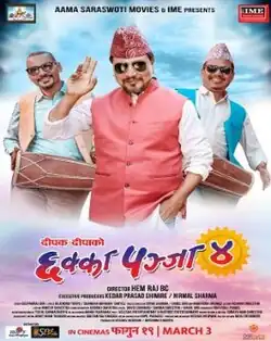 Chhakka Panja 4 (Nepali: छक्का पन्जा ४) is a 2023 Nepalese comedy film written by Deepak Raj Giri and directed by Hem Raj BC. It is the fourth and the latest film in Chakka Panja franchise. Produced by Dipendra Khaniya, Kesav Neupane, Kedar Ghimire, and Nirmal Sharma under the banner of Aama Saraswoti Movies & IME Present, film was released on March 3, 2023, alongside another Nepali film Chhadke 2.[3][4] The film had biggest opening of 2023 for any film in Nepal and went on to become 2nd Highest Grossing Nepali film in Nepal and 3rd Overall in Nepal.[5] It stars Deepak Raj Giri, Benisha Hamal, Kedar Ghimire, Neer Shah, Nirmal Sharma, Buddhi Tamang, Deepa Shree Niraula, and Raj Acharya in lead role.[6][7] The film was released nationwide in Nepal, as well as more than 500 screens in other countries.[8][9] This movie has celebrated 51 days of running at 16 different theaters in Nepal and collected around रू200 crore (US$15 million).[10]