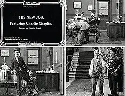 Essanay Studios in Chicago was the capital of Chicago film in the first decades of the 1900s. Charlie Chaplin started his career in 1915 at Essanay Studios. He was hired in 1915 and paid $1,250.00 per week.[4] Chaplin improvised the scripts that were given to him by adding slapstick humor. Ben Turpin, fellow actor for Essanay, and Chaplin worked together on slapstick projects. Turpin was cross-eyed which made him a natural sidekick to the antics of Chaplin.[4] Chaplin's only full feature production at Essanay was called His New Job.[5] Another notable actress who found a beginning at Essanay Studio was Gloria Swanson. Swanson would later star in many television and film productions including the smash hit Sunset Boulevard.