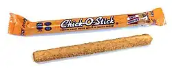 Chick-O-Stick is a candy produced by the Atkinson Candy Company[1] that has been manufactured since the 1950s. It is made primarily from peanut butter, cane sugar, corn syrup, toasted coconut, natural vanilla flavor, and salt with no hydrogenated oils or artificial preservatives added. There is also a sugar-free version of the candy which uses Splenda as a sweetener.