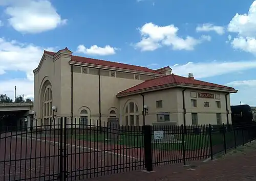 The Chicago, Rock Island and Pacific Railroad (or Rock Island for short) established a station at Chichasha initially out of a boxcar.[1] The first "permanent" station on the site was a very rudimentary barn-like building.[2] The Rock Island initiated a series of upgrades along their line in Oklahoma beginning in 1910. This included yard improvements as well as new depots along the line.[3] The new station building at Chichasha opened on June 16, 1911.[4] The station would also serve as the terminus of the Chickasha Street Railway, a streetcar line, between 1910 and 1927.[5]