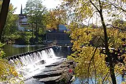 One of the ventures of the Boston Associates,[10] Chicopee is a city built around several smaller former mill communities on its namesake, the Chicopee River. During the 19th century, the city was home to the first American producer of friction matches as well as a variety of other industries,[11] including the Ames Manufacturing Company, an early pioneer in machining lathes, building upon the work of Springfield's Thomas Blanchard, and the largest producer of swords and cutlasses for the Union Army during the Civil War.[12][13] By the start of the 20th century, the city was home to a number of industrial plants, including those of the Fisk Rubber Company, one of the largest tire makers of that time, and some of the earliest sporting goods factories of A. G. Spalding.[14]