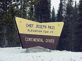 Chief Joseph Pass (elev. 7,251 feet (2,210 m)) is a mountain pass on the continental divide of the Rocky Mountains in the northwestern United States joining Lemhi County, Idaho, and Beaverhead County, Montana. The pass is in the Bitterroot Mountains and is traversed by Montana Highway 43; it is named after Chief Joseph of the Wallowa band of the Nez Perce tribe, who traversed the pass in the summer of 1877 during the Nez Perce War, prior to the Battle of the Big Hole to the east.